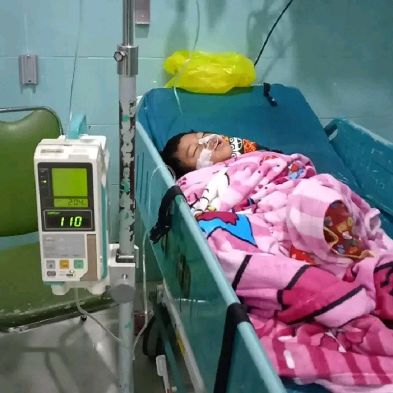 Qodurrallah.. dalam keadaan seperti itu, beliau diuji lagi dengan putri kecilnya Muatul walidah yang menderita penyakit microseffali / hidrosefalus dan gizi buruk sejak usia 20 bulan, hingga saat ini menginjak usia 8 tahun Muatul walidah sering keluar masuk rumah sakit karena kejang-kejang. EVfvSfn1Y9yY8T6G_1674787855.jpg Muatul Walidah sedang dirawat